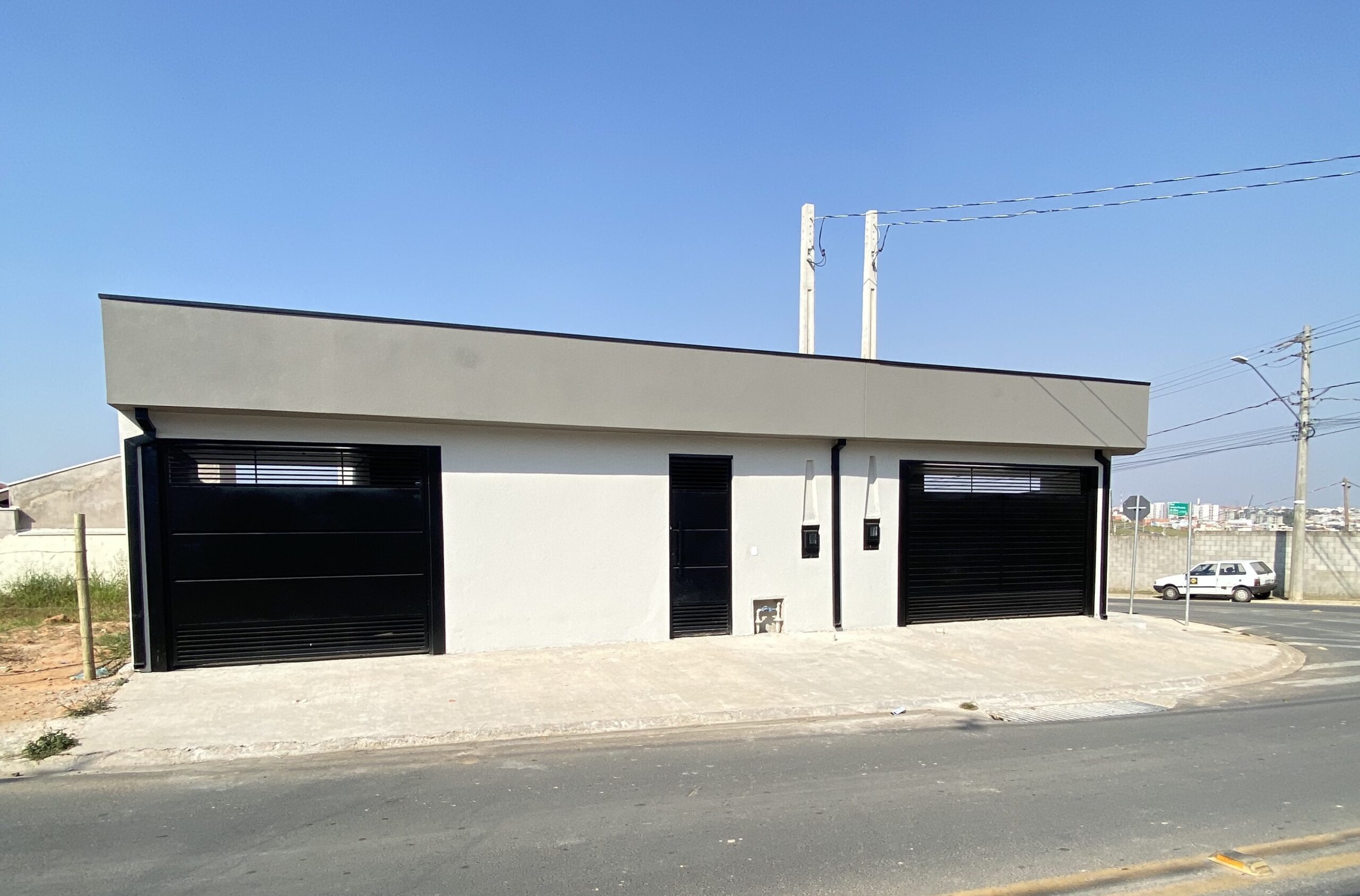 Portão eletrônico e garagem coberta para 2 carros.