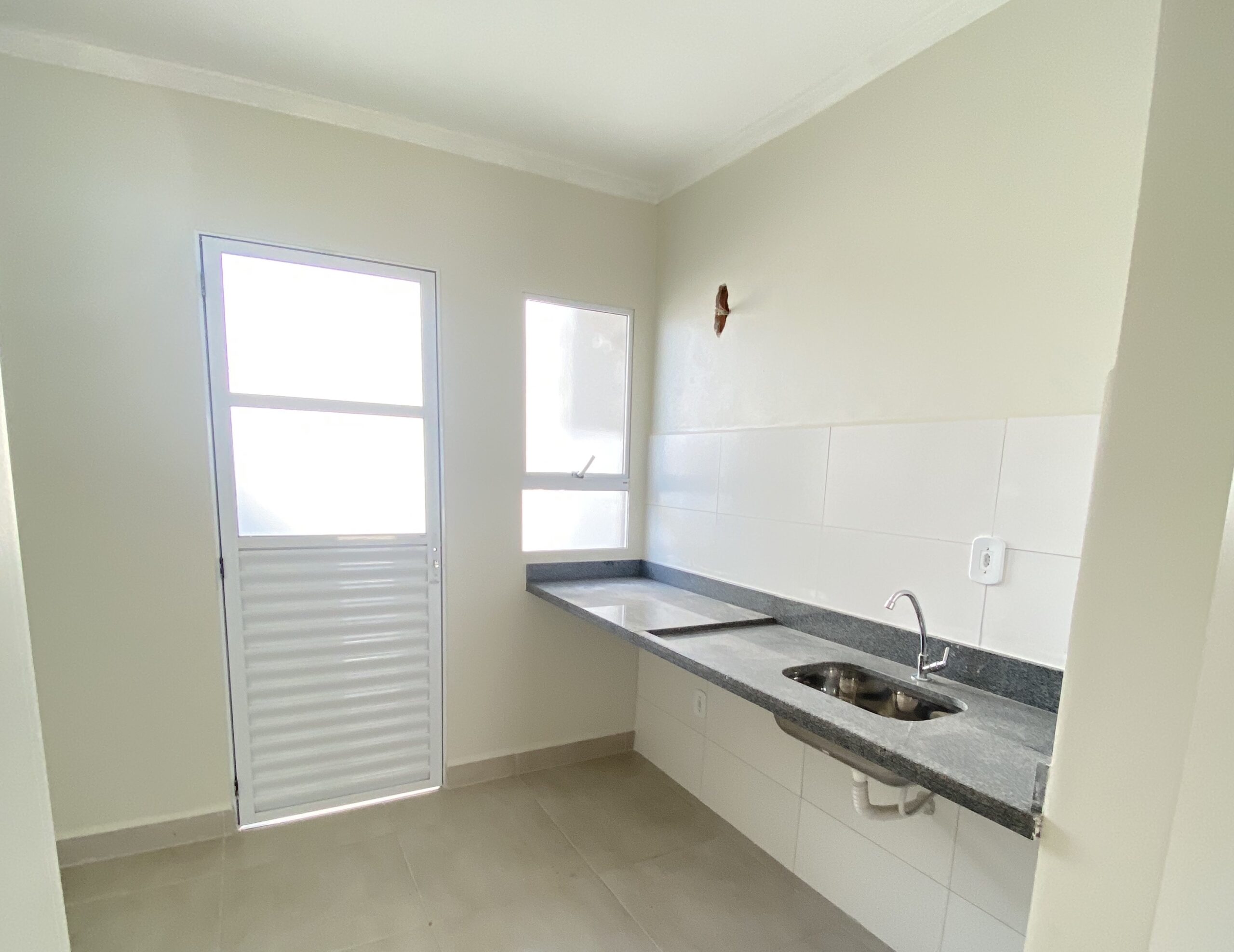 Casa térrea com 2 dormitórios, banheiro, cozinha, sala de jantar e estar integradas, quintal e lavanderia.